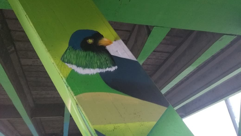 Las personas que transiten por el puente del SENA, podrán apreciar que sus vigas ya están pintadas de diferentes colores y es posible ver las primeras de las 21 aves que acompañarán a este gran mural.