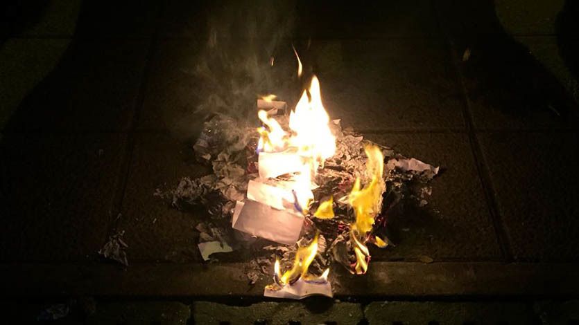 Sobre las 6 de la tarde la movilización llegó a la Alcaldía Municipal en donde todavía permanece la comunidad quemando de nuevo los recibos del predial. (Ver: “Puse mi casa en venta para pagar el predial”: Guillermo Vargas, taxista de Ibagué)