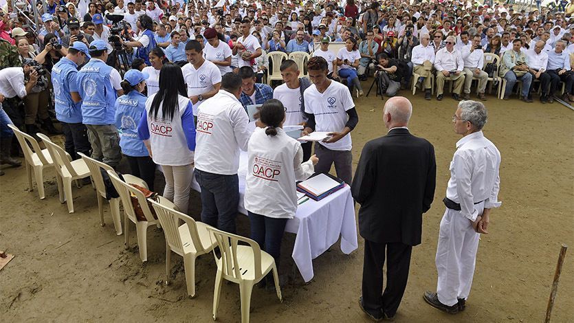 Este martes desde Buenavista, vereda del municipio de Mesetas (Meta), se llevó a cabo el acto de dejación de 7.132 armas de las Farc, que señala los pasos de ese grupo hacia su participación en la vida democrática del país.