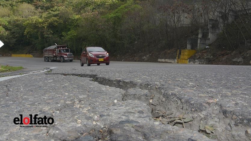 Los conductores encuentran a diario hundimientos, desniveles provocados por fallas geológicas, grietas, desprendimientos de banca y deterioro de la carpeta asfáltica.