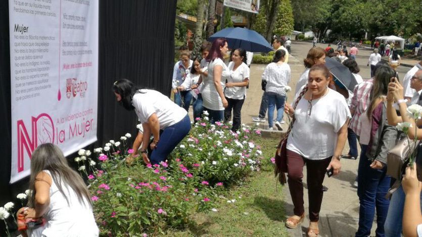 La marcha se realizó por la carrera Cuarta estadio y contó con la participación de hombres y mujeres, que caminaron con claveles blancos en sus manos y con carteles en los que hacían alusión al respeto por la vida de las mujeres.