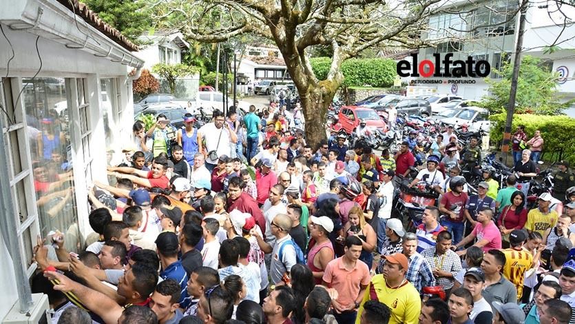 En los cuatro puntos de ventas habilitados por las directivas del equipo: Mercacentros 4 (Av. Guabinal) y 10 (El Poblado), Centro Comercial Multicentro y oficinas de la institución, en el barrio Cádiz se ha observado alto flujo de personas tratando de adquirir boletas para el partido de este miércoles 6 de junio, a las 7:30 de la noche en el Estadio Manuel Murillo Toro.