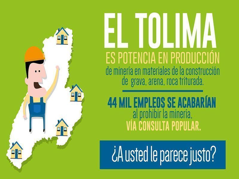 Con el eslogan ‘¿A usted le parecería justo?’, las imágenes de ‘Al descubierto’ buscan persuadir a los usuarios de las redes sociales sobre si la consulta popular minera es beneficiosa o no para la ciudad. Una de ellas señala que una iniciativa popular en contra de la minería podría ocasionar la pérdida de miles de empleos de personas que están cercanas al sector de la explotación de minerales en el Departamento: «El Tolima es potencia en producción de minería en materiales de la construcción de grava, arena, roca triturada. 44 mil empleos se acabarían al prohibir la minería vía consulta popular», dice la imagen.