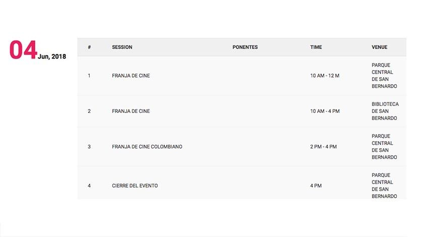 Lizeth García Gonzales, representante de la Fundación Social, organizadores del evento, anunció que esta muestra cultural es gratuita y tendrá como invitados dos importantes realizadores colombianos que han demostrado que en el país sí es posible hacer cine.